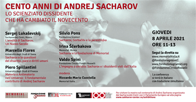 Convegno "Cent'anni di Andrej Sacharov. Lo scienziato dissidente che ha cambiato il Novecento" - 8 aprile online.